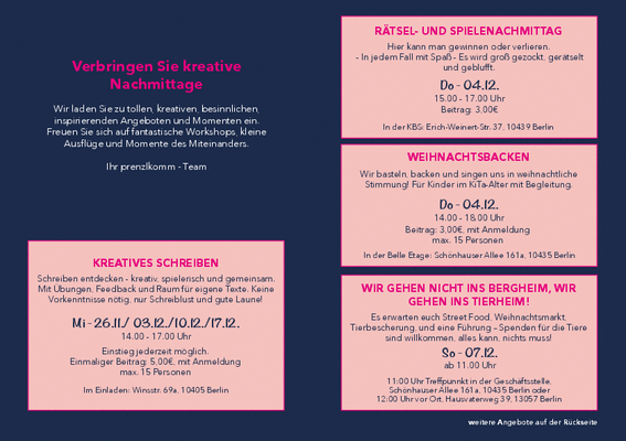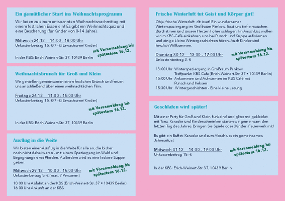 Informationen zu anderen speziellen Veranstaltungen hängen im Café aus oder können erfragt werden.