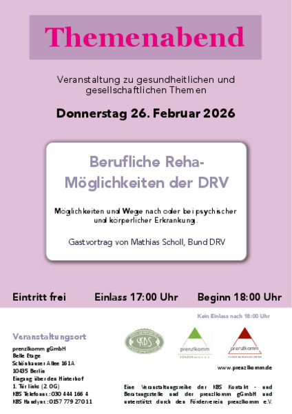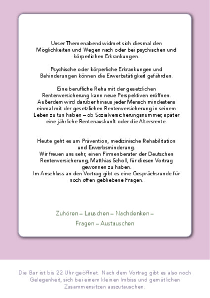 Nächster Themenabend - Donnerstag 26. Februar 2026 - Berufliche Reha - Möglichkeiten der DRV